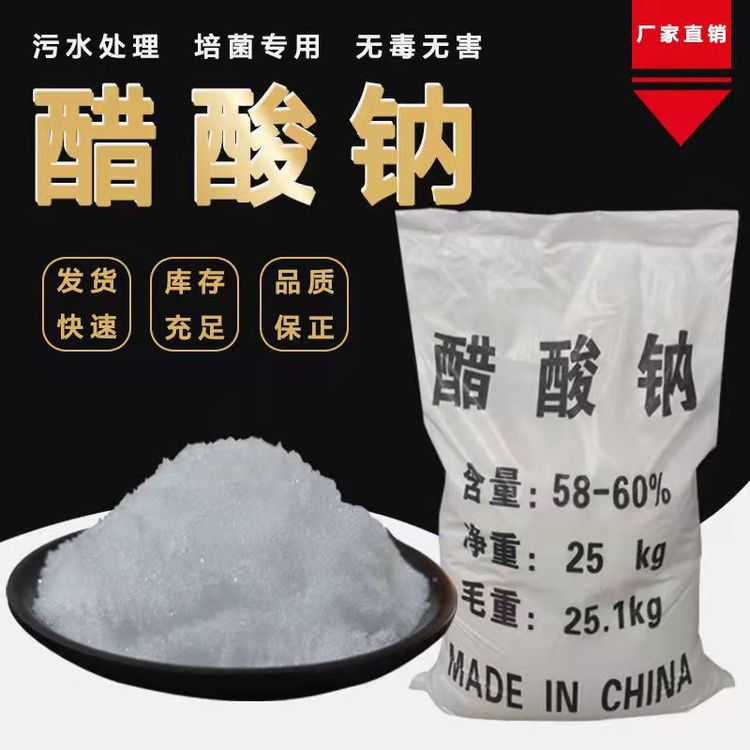 乙酸鈉,又稱醋酸鈉,是一種有機物,分子式為CH3COONa,分子量為82.03。三水合物乙酸鈉性狀為白色結晶體,相對密度1.45,熔點為58℃,在干燥空氣中風化,在120℃時失去結晶水,溫度再高時分解;無水乙酸鈉為無色透明結晶體,熔點324℃。易溶于水,可用于作緩沖劑、媒染劑,用于鉛銅鎳鐵的測定,培養基配制,有機合成,影片洗印等。